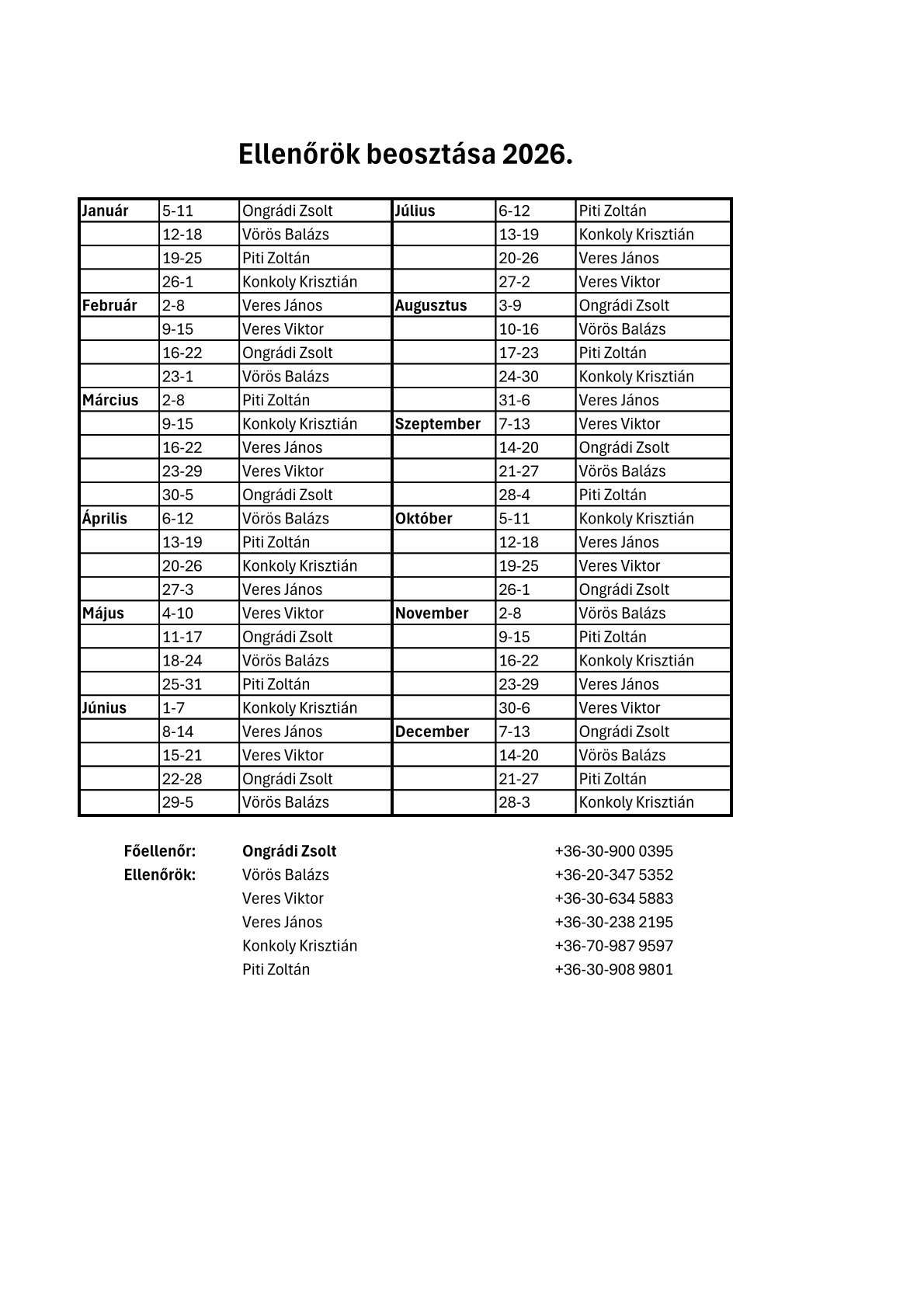 • Halőrök beosztása